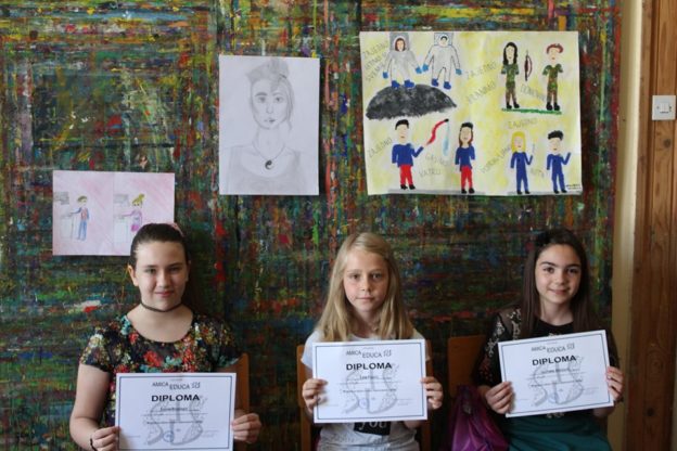 As part of the project „Breaking the silence on gender based violence“ implemented in the Elementary School „Miladije“ and „Solana“, on Friday, 7th June 2019, in the premises of the Amica Educa Association an exhibition of artworks named „Different, but equal“ was organized. The winners of the art contest were: 1 place by Emina Smailagic, a pupil of the 8th grade, 2nd place Ismihana Brkičević, a pupil of the 5th grade, 3rd place Ejna Paočić, a pupil of the 3rd grade.